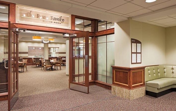 Eileen and Wayne Ryan were benefactors of the New Cassel Foundation during their lives. New Cassel is sponsored by the School Sisters of St. Francis, a group of Sacred Heart nuns. Eileen had attended a Sacred Heart College and was always a generous donor to Sacred Heart schools. It was a trip to visit their beloved friend Sr. Marie Gross-Rhode at New Cassel where Eileen saw a need for a proper “restaurant” for the residents. Her vision was for a dining area in which residents could be seated, given a menu and waited on without having to manage wheelchairs, canes or other challenges. Eileen and Wayne Ryan provided a $250,000 gift to New Cassel for the establishment of the Ryan Dining Room in 2011.